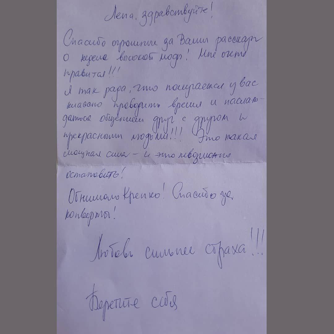 "Меня накрыло волной любви и радости, после прочтения писем. Кто-то прислал в письме ноты Моцарта и это супер идея! Мне можно присылать ноты и они так классно звучат в голове"