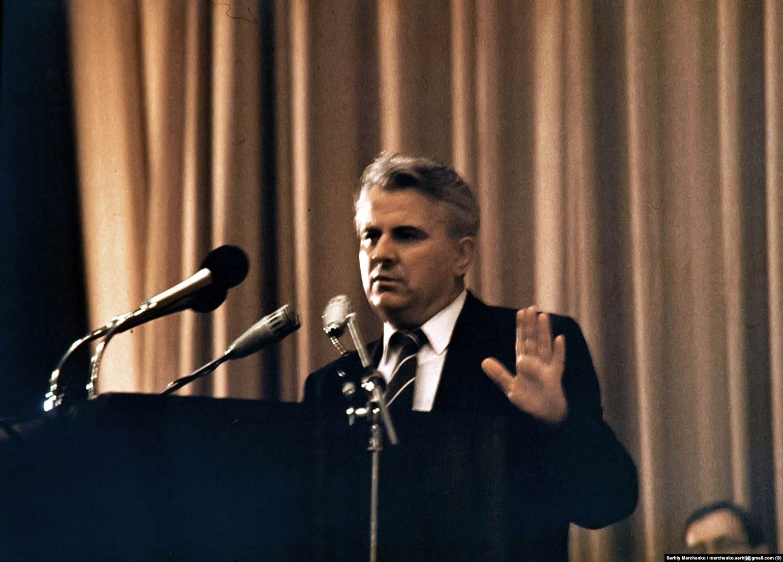 "Так же было и на съезде "Народного руха" в сентябре 1989 года, – вспоминает Леонид Кравчук. – С одной стороны, Чорновил открыто заявил, что Народный рух будет национально-освободительным движением, что абсолютно правильно, а с другой – он сделал прямой выпад против меня. "С этими коммуняками мы не должны сотрудничать", – заявил он. Чорновил все время пытался обострить со мной отношения, хотя, прямо скажу, на том съезде зал не воспринял меня агрессивно. Я выступил, высказал свои мысли, и ему это, думаю, еще больше не понравилось. Тем более когда ко мне подошли девушки, чтобы повесить на пиджак сине-желтую ленту с трезубцем. Кстати, я очутился в пикантной ситуации. Что мне делать – представителю ЦК КПУ? Я немного посидел, а потом снял пиджак и надел его на кресло возле себя, а когда покидал зал, то взял пиджак на руку и ушел".